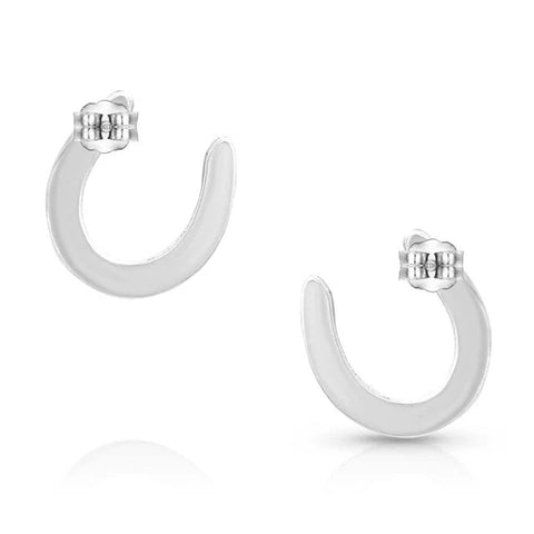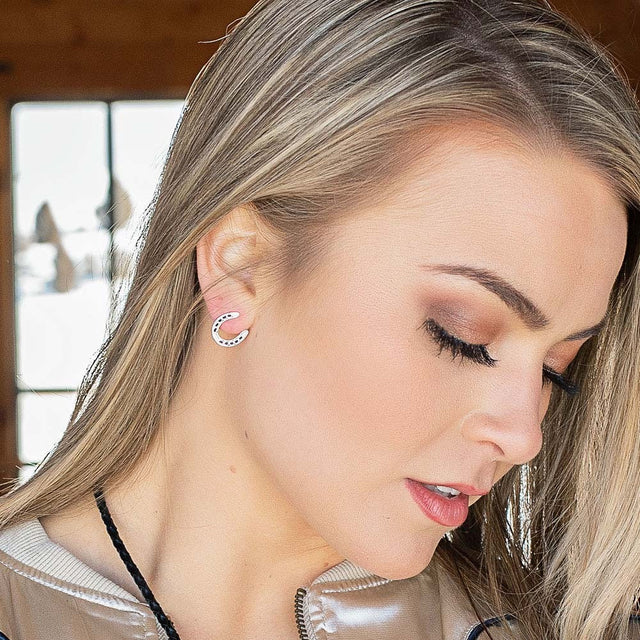 All it takes is a little bit of luck! These small silver-finished horseshoe earrings are a great set, perfect for everyday wear. Inspired by the classic shape and design of a horseshoe these silver-finished earrings have hand-applied paint in the small divots that create the design for the holes for the horseshoe nails. Earrings have hypoallergenic stainless steel post backs. Earrings are made in Columbus, MT.