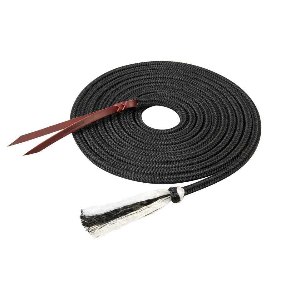 The most popular mecate with trainers and clinicians, this mecate keeps its shape, never stretches and has a great feel. Features a crown knot and premium leather popper. Handcrafted by Weaver Leather craftspeople in Mt. Hope, Ohio. Black.