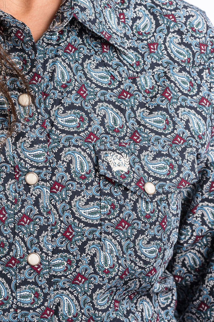 Cinch Ladies Blue Paisley Print Button Down Shirt #MSW9200030