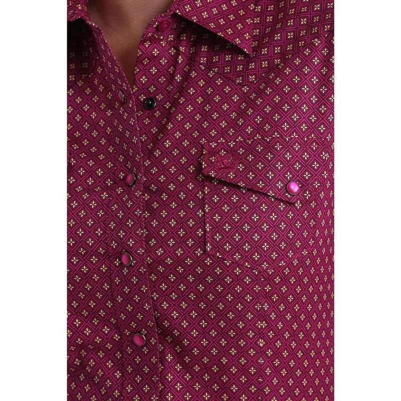 This bold, Fuchsia Print women's Snaps western shirt is both performance-ready and eye-catching.