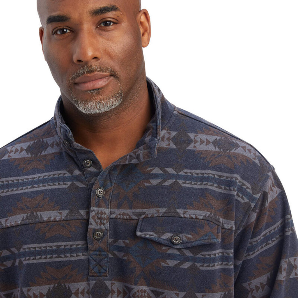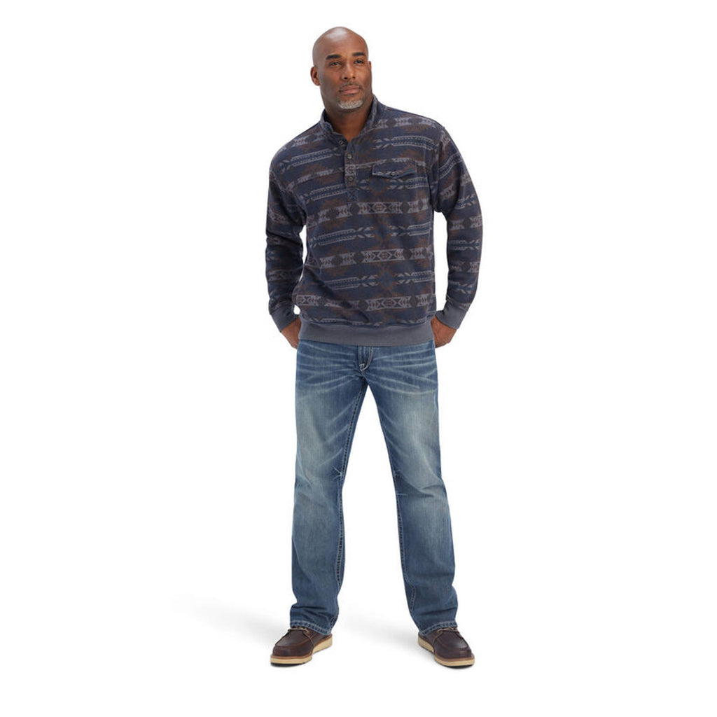 Mixing athletic details with a unique Southwestern print, this pullover strikes a balance between cozy and put-together. A half-placket adds structure without feeling stuffy; the slightly faded finish gives the appearance of a vintage find.