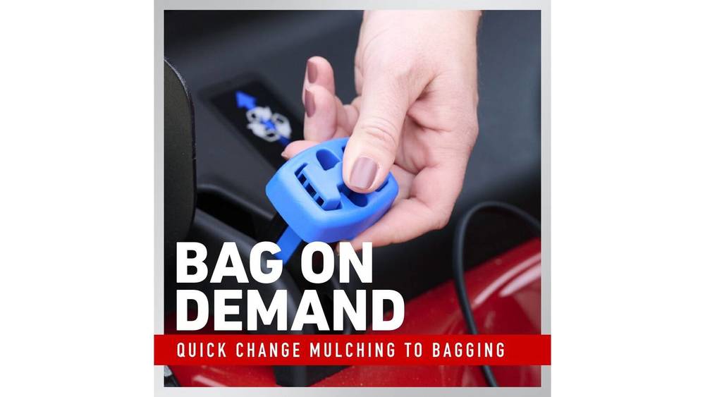 - Bag On Demand: Switch from mulching to bagging in seconds while leaving the bag on the mower.