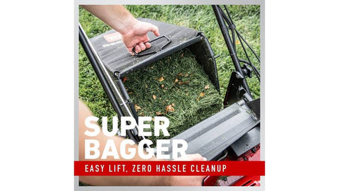 - Super Bagger: Get the job done more easily than ever with our new Super Bagger, shaped for easier lifting, no-shake pouring and zero-hassle cleanup.