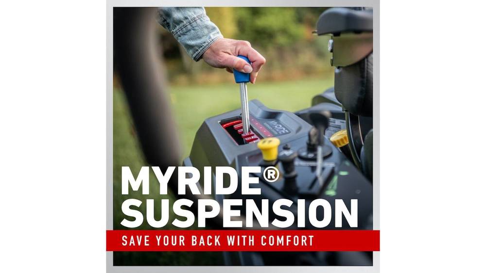 - MyRIDE® Suspension System: No more rocky rides. Save your body from the toughest terrain and avoid slow mowing speeds with the MyRIDE Suspension System. Enjoy a more comfortable ride, keeping you productive and feeling fresh.