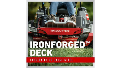 - IronForged® Deck: Toro IronForged® fabricated deck ensures years of reliability and top performance.