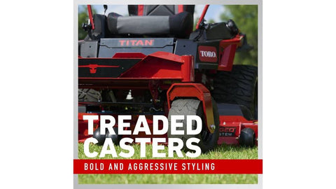 Release this big bad beast onto your property and watch Mother Nature cower beneath you. The Toro TITAN is built with over a century of pro-level engineering so you can devour every acre with unflinching strength, laser precision and extraordinary power. With a heavy duty IronForged deck, a reinforced bullnose leading deck edge and massive, aggressive treaded rear tires, there's nothing that will stop this fearless force of perfection. All the control in your hands with features like a commercial-style drop pin height of cut and easily adjustable control levers. So go ahead, unleash your inner beast.