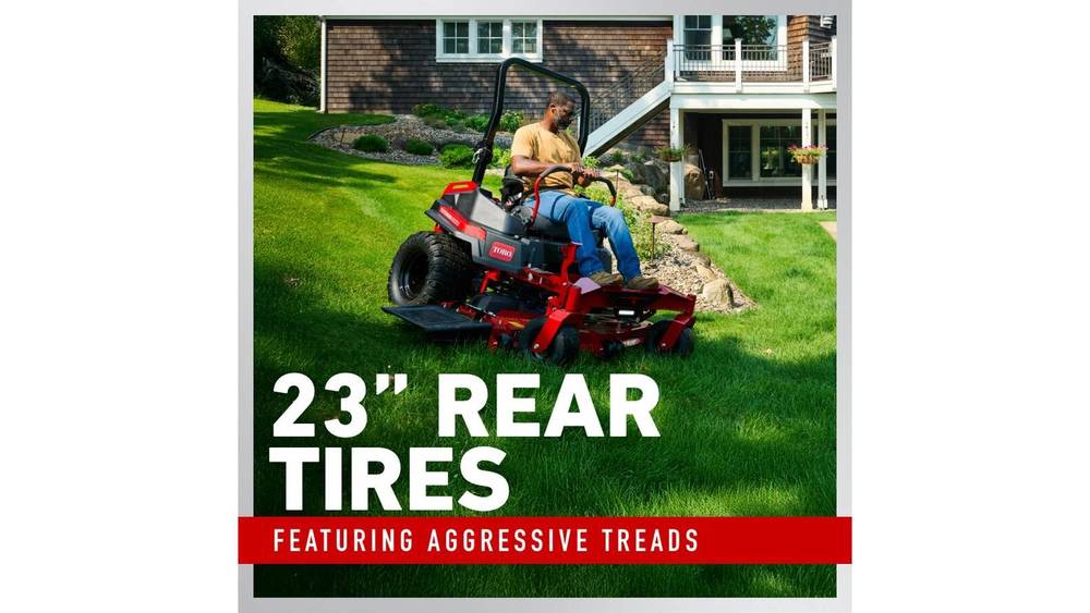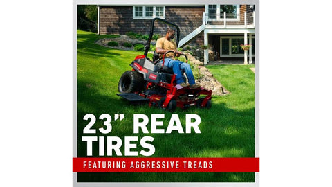 • Massive 23-inch rear tires feature aggressive treads meant to bring Mother Nature to her knees—all without tearing up your turf.