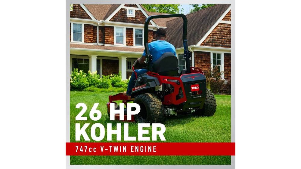 Disclaimer Specifications subject to change without notice and without incurring obligation. Products depicted are for demonstration purposes only. Actual products offered for sale may vary in design, required attachments and safety features. *26 HP gross (747 cc) at 3,600 RPM SAE J1940 and SAE J2723, as rated by Kohler®. As configured to meet safety, emission and operating requirements, the actual engine horsepower on this mower may be significantly lower. †See retailer for warranty details.