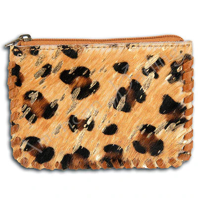 American Darling Coin Purse Bag Braided Hair-On Cowhide Genuine Leather Mini Pouch with YKK Zipper