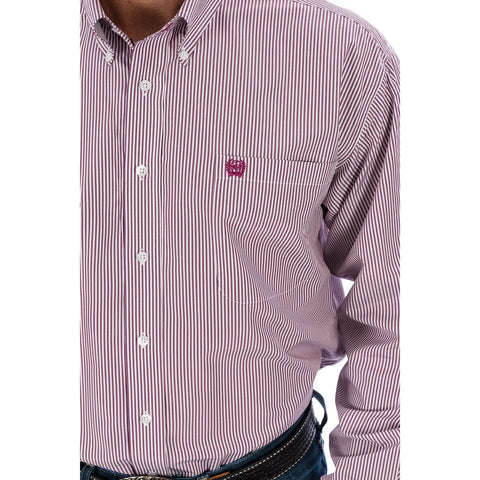 Cinch Men's Burgundy Pinstripe Button Down Shirt #MTW1104730