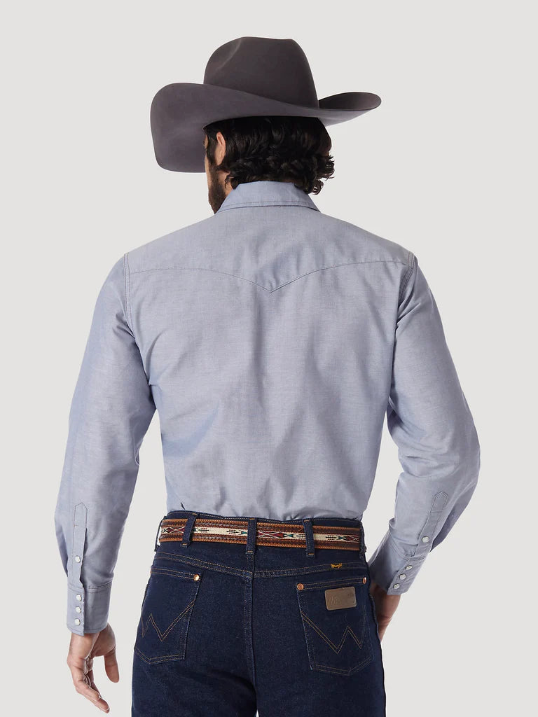 When the going gets tough, you'll be glad to know this shirt has your back. Wrangler® work shirts are a cut above the rest and they have certainly earned their credentials in the eyes of cowboys across the country. These hard-working wardrobe essentials come complete with all the authentic details you know and love about our Western shirts, including a spread collar and spade flap snap pockets with snap closure as well as Western-inspired front and back yokes. But we didn't stop there. Wrangler® Cowboy Cut® shirts also come with a convenient pencil slot and the iconic logo riser label on the left pocket.