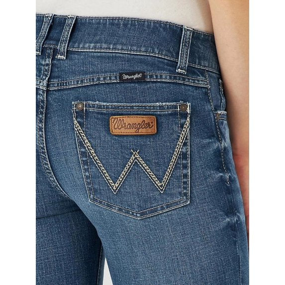THE TROUSER: THE ULTIMATE IN WOMEN'S RETRO® JEANS Like all Wrangler Retro® jeans, our Mae wide leg is marked by its Western authenticity, making it a go-to style for cowgirls everywhere. With its contour waist and mid rise, these women's trouser jeans are made to fit comfortably while they flatter. Want the look of a flare with added comfort? Our women's wide leg jeans make it happen. With more room at the knee and a gradual opening down the leg, the Mae wide leg gives you the room you need to stay active and in style. Wrangler® jeans for women are designed with a Western state of mind, so you can be confident that they'll keep up with you no matter what the day brings. Fit: Regular Rise: Mid Front Rise: 8 5/8" Leg: Wide Leg Opening: 20 1/2" Front Closure: Zip-Fly with button closure Back Pocket: Basic Back Pocket Closure: Two back pockets with no closure